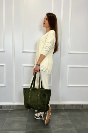 El pantalĂłn es de pata recta con cintura elĂĄstica. El jersey de escote V, mĂĄs largo por la espalda. Apertura de 3 cm en los laterales.