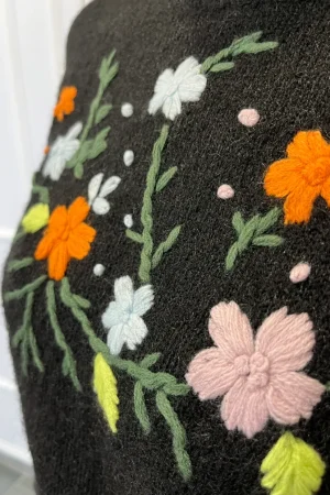 28,99 €Jersey punto grueso con bordado floral y cuello caja.