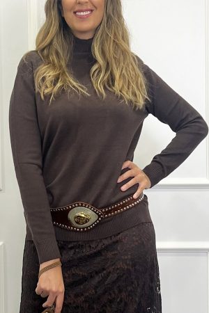 36,99 €Jersey tricolor (fusia, caldera y marrón) de manga larga con cuello caja. Punto texturizado haciendo líneas